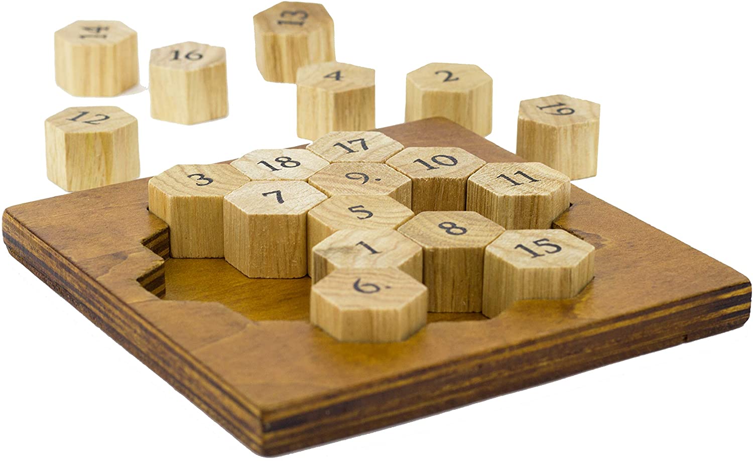 Can you make every row add up to 38? There are 15 rows in all directions to complete, each made up of 3, 4 or 5 pieces. This brilliant concept allows you to complete the puzzle by using every number from 1 to 19.