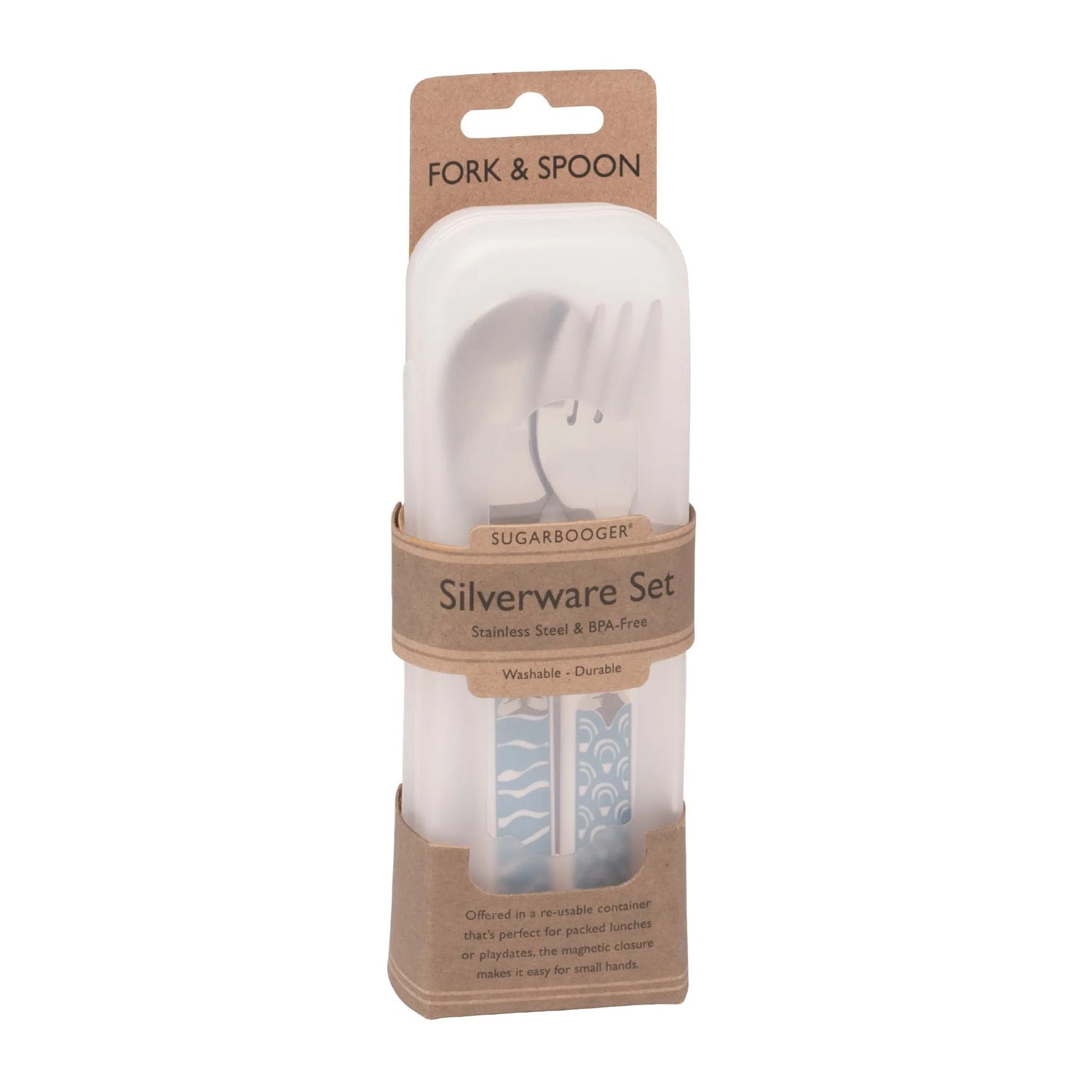The Baby Otter Silverware Set features playful, cuddly otters frolicking in the ocean. Sized just right for little hands to grip, each set is packaged in a reusable carrying case that's perfect for packed lunches or play dates.