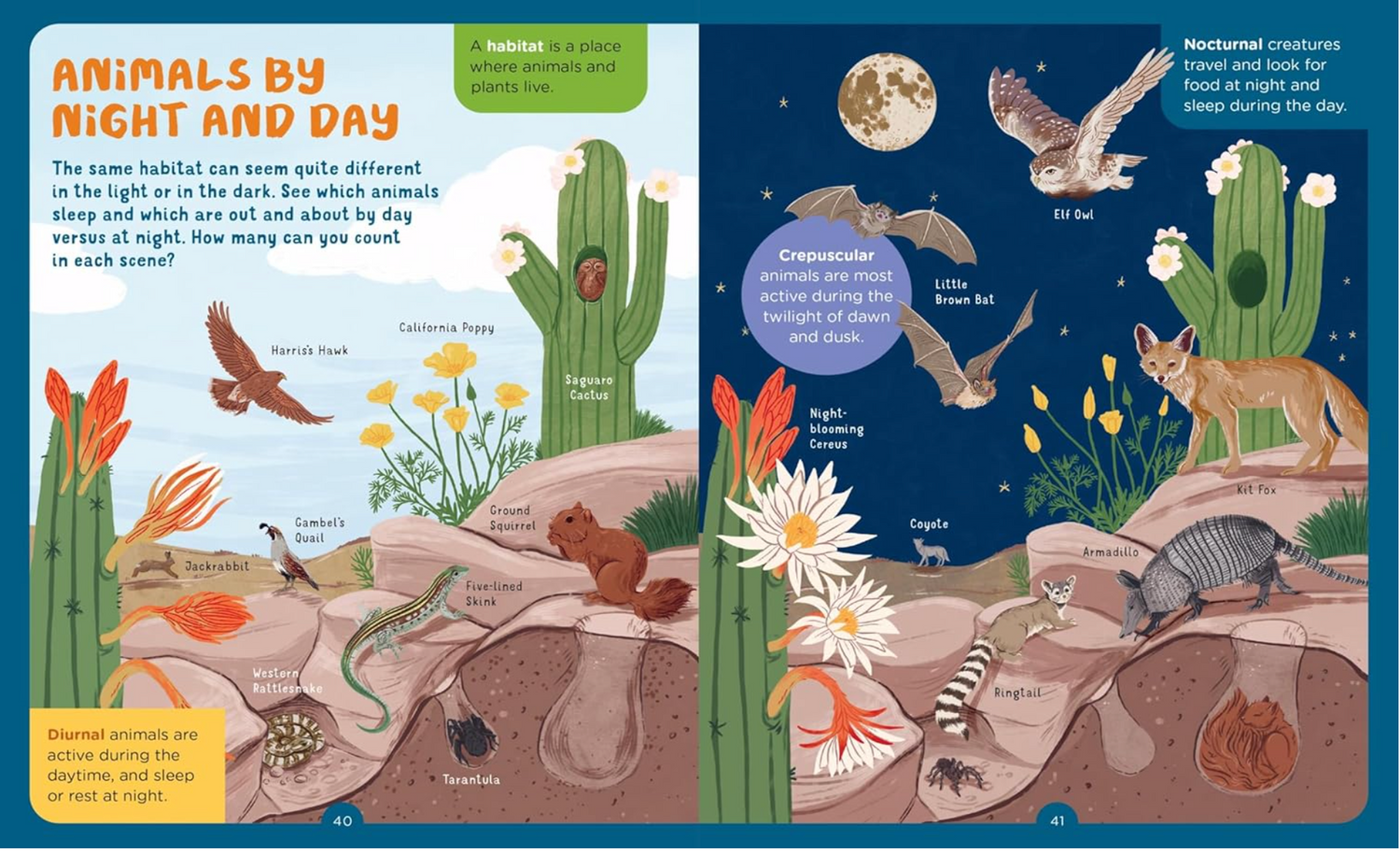 Backpack Explorer: Night Walk is packed with prompts and activities, including 12 interactive field guides, sensory scavenger hunts, activities such as learning about the phases of the moon, listening to the noises of the night, and looking for constellations in the sky. With a real magnifying glass, 50 stickers, and a log for recording night finds, this book is perfect for outdoor-loving kids and their nature adventures after dark.