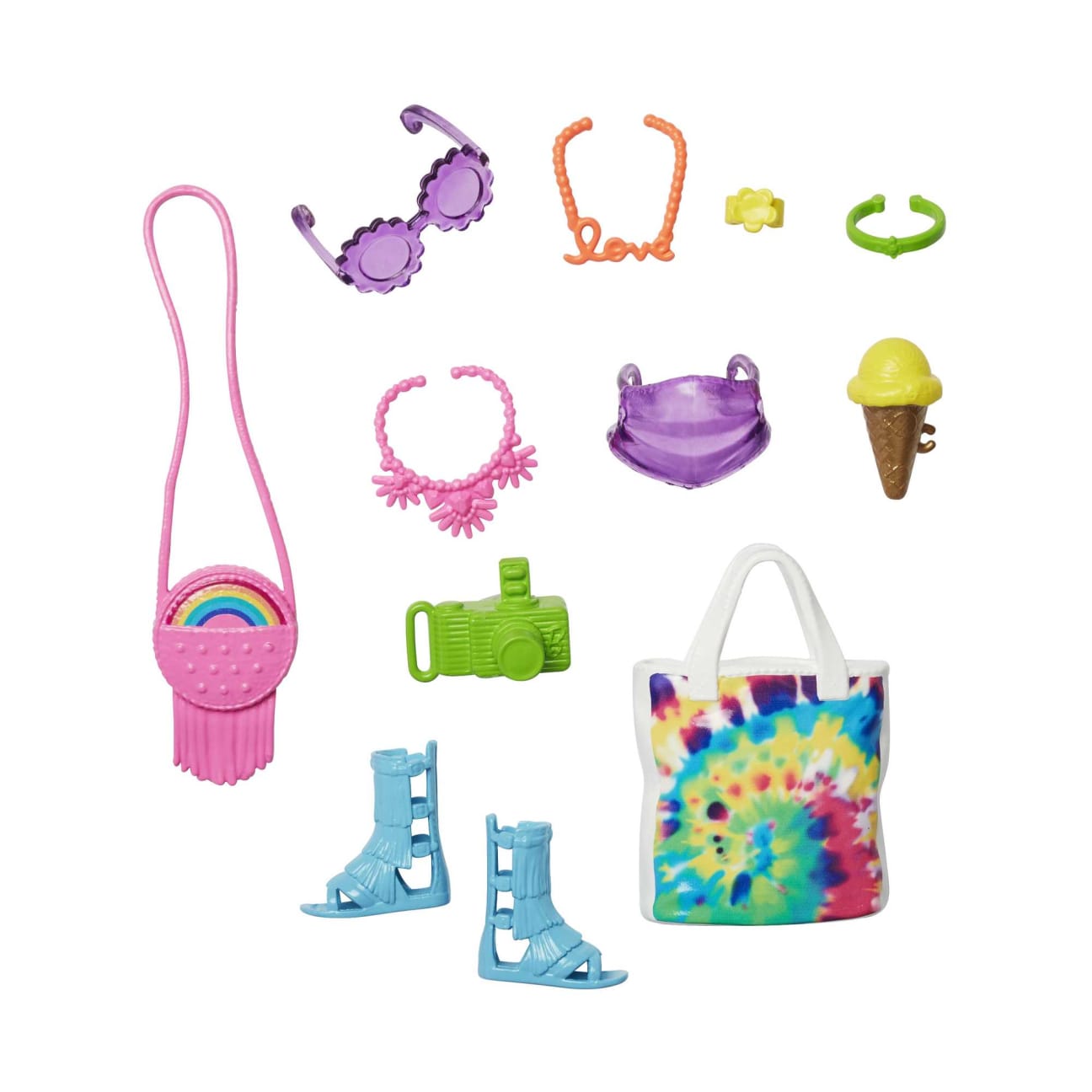 Barbie dolls are prepared for every journey, and their ensemble should be as well (sold separately, subject to availability). These add-on packs for Barbie® doll makes styling and storytelling effortless with 11 pieces -- spanning motifs originating from the media, travel, and music. Included pieces range from fashion components such as hats and bags to entertaining storytelling components that supplement the theme. Mix and match with other garments and accessories in the line. This versatile vinyl package is perfect for organizing, toting, and personalizing - store Barbie® fashion items and accessories, take them with you, and even customize it for expressing your style!