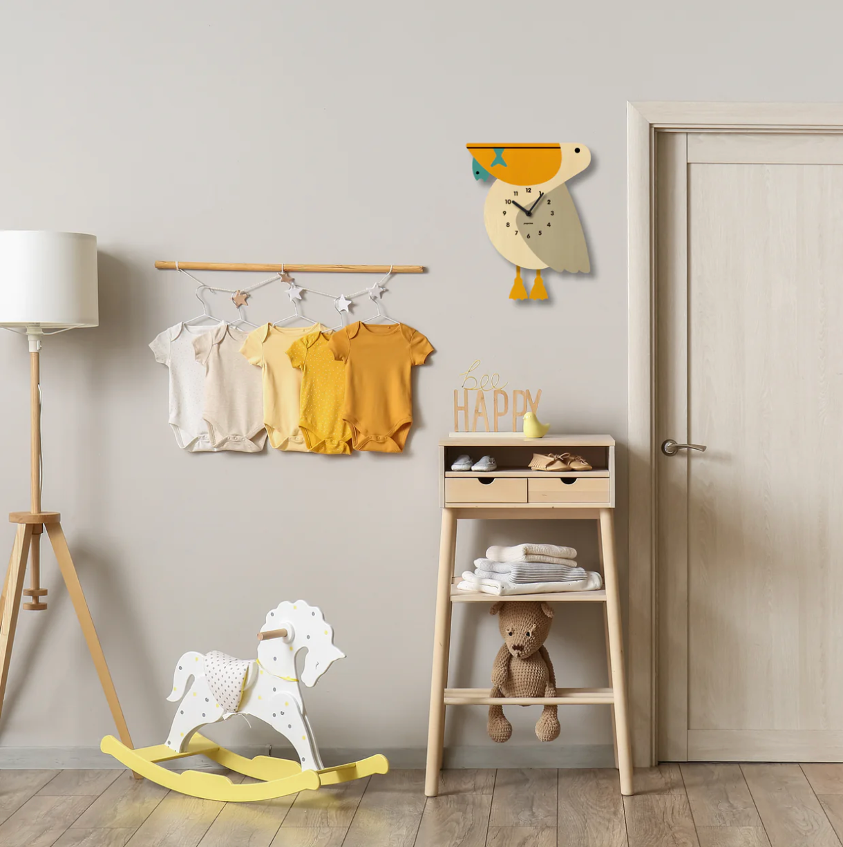 Transform your space with our pelican wall cock. Its whimsical design, complete with swinging legs and a fish-eating pelican, adds a touch of fun and seaside vibes. Perfect for bird lovers, this clock is a unique and charming addition to any room.