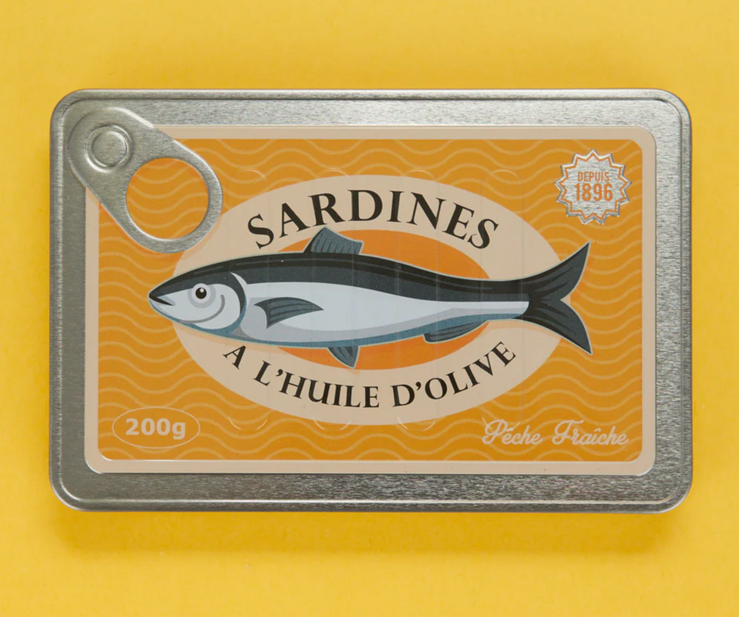 Realistic sardine tin design with textured finishes