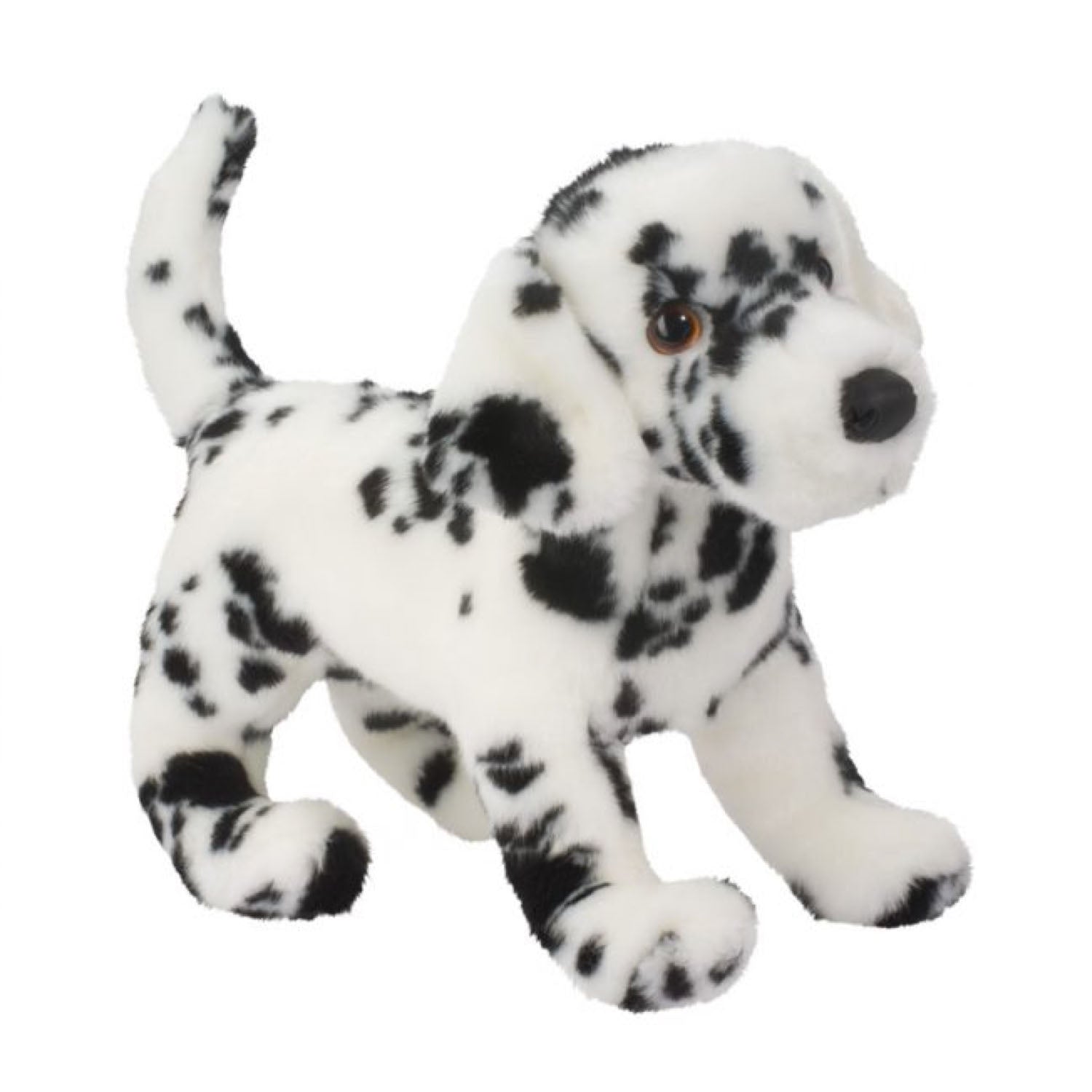 Winston the stuffed dalmatian dog couldn’t be any cuter! Classic black spots on soft white fur. Made by Douglas, a family owned business that has been making heirloom quality stuffed animals and plush toys since 1956. 16 inches. Machine washable. Ages 2 and up.