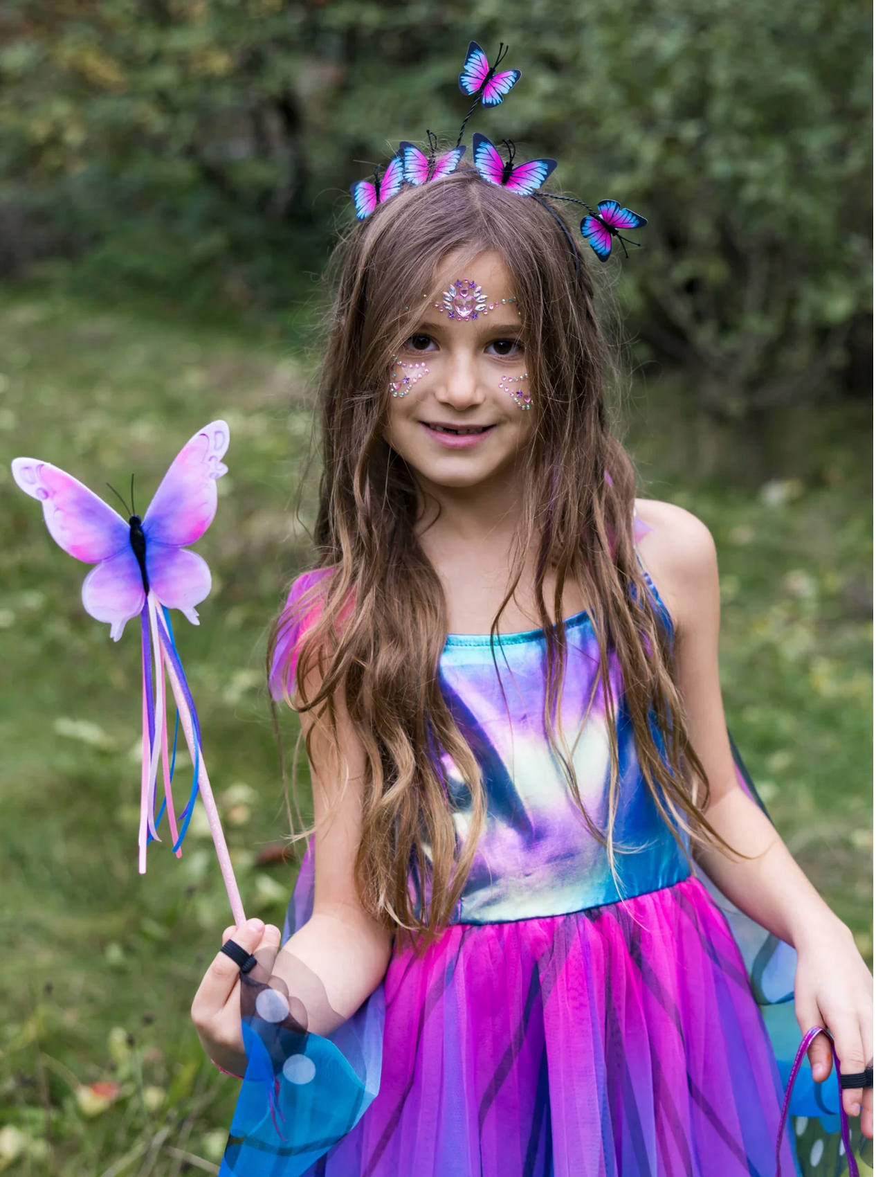 Introducing the Float like a Butterfly Wand – a whimsical accessory to bring the magic of fluttering butterflies to your child's world! This enchanting wand features a stunning watercolor butterfly in shades of purple and pink, poised delicately at its tip.