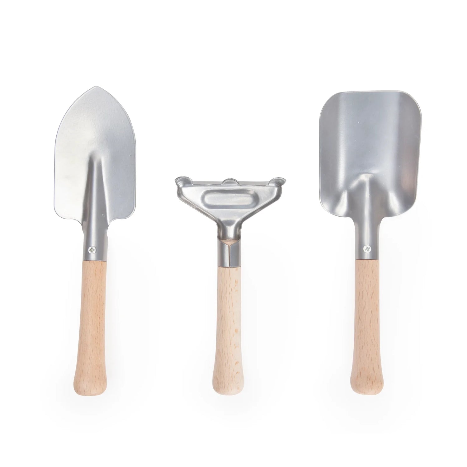 Dimensions: (Rake) 7,6 x 15,2 x 3,8 cm (Shovel) 6,6 x 20 x 5,1 cm (Spade) 5,8 x 21,6 x 2,5 cm