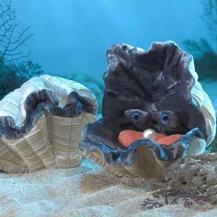 Inside the lovely and textural shell, behold the bounty of the sea. With four fingers, operate the clam shell and eyes to uncover a rare pearl tucked away safely inside. This extraordinary puppet is the most fun you'll ever have with shellfish! Measures 7 inches wide. Ages 3 and up.