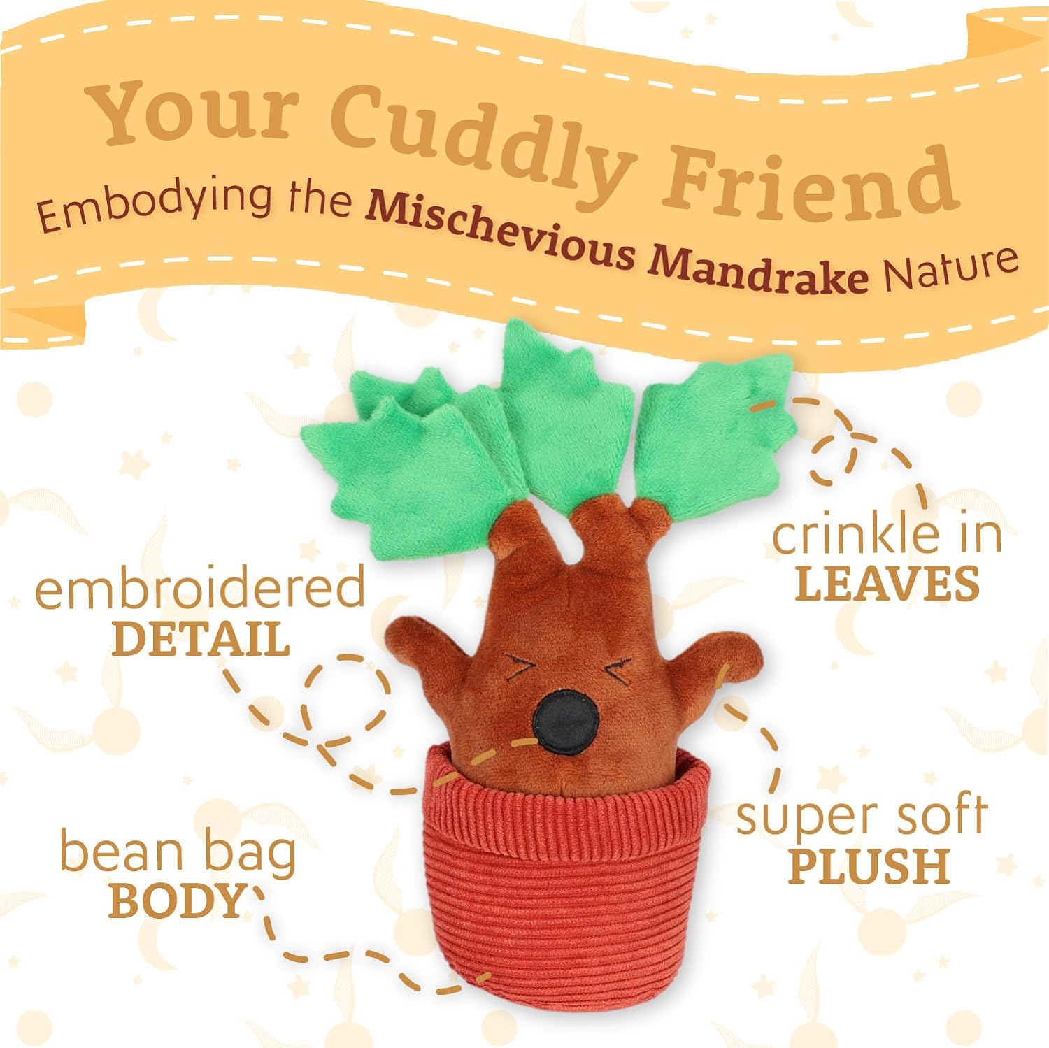 Kids Preferred presents this super soft, cute, charmingly detailed stuffed animals. Babies, toddlers, and kids love this classic and collectible comfy friend. The Harry Potter Potted Mandrake stands 10" and is ultra soft. Features an embroidered details, crinkle leaves, and beans. A magical Harry Potter gift for anyone who loves plushies.