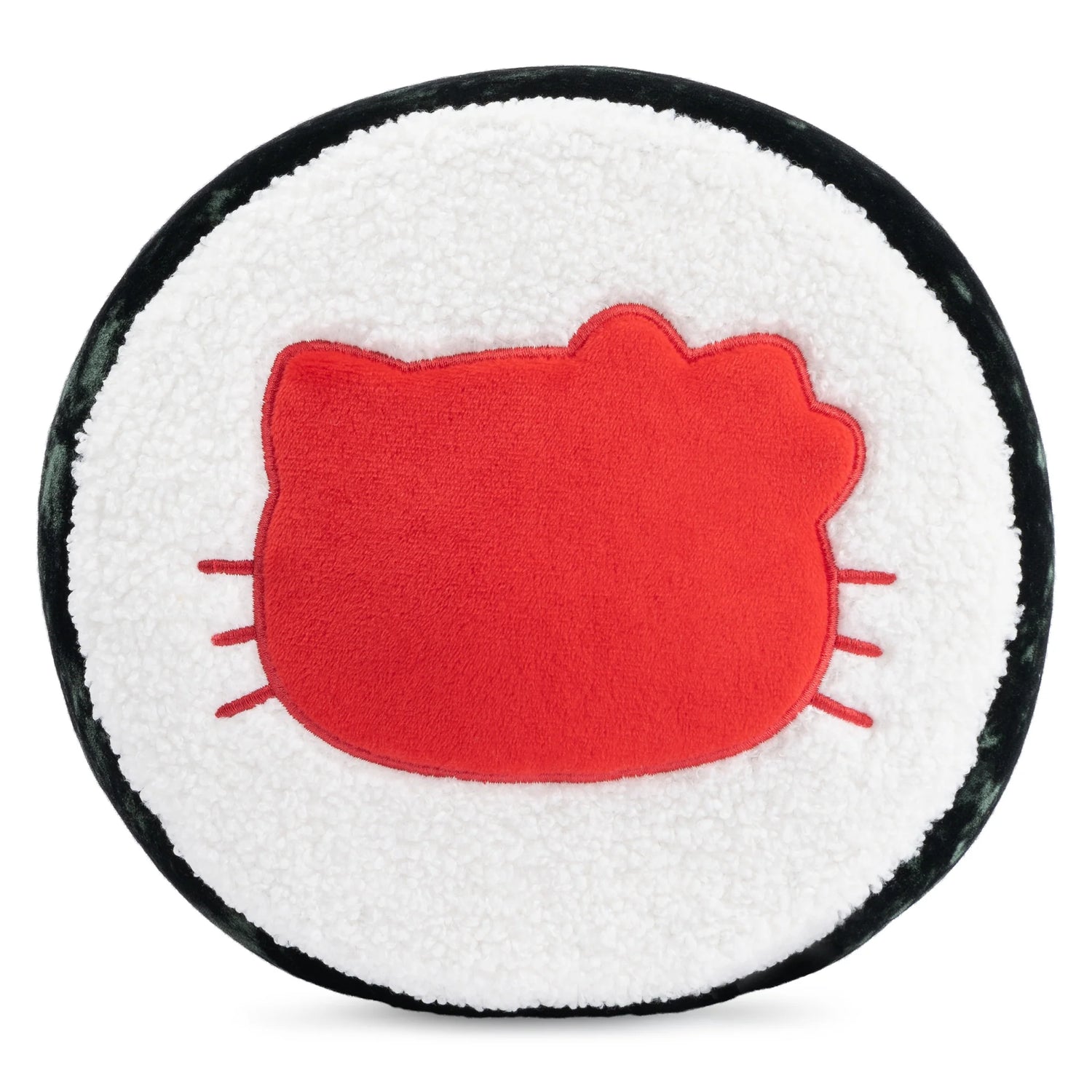 Hello Kitty is a classic Japanese delicacy! This whimsical 10” plush features Hello Kitty as a large piece of sushi with embroidered facial details and several bright veggie sticks tucked behind her head. She sports her signature red bow and sits comfortably on a bed of fluffy white rice, which is wrapped in a dark green piece of crushed-velvet nori. The bottom of the plush also features a bright red silhouette of Kitty’s head as an extra treat for collectors. This unique, eye-catching Hello Kitty plush is a must-have for collectors and foodies alike!
