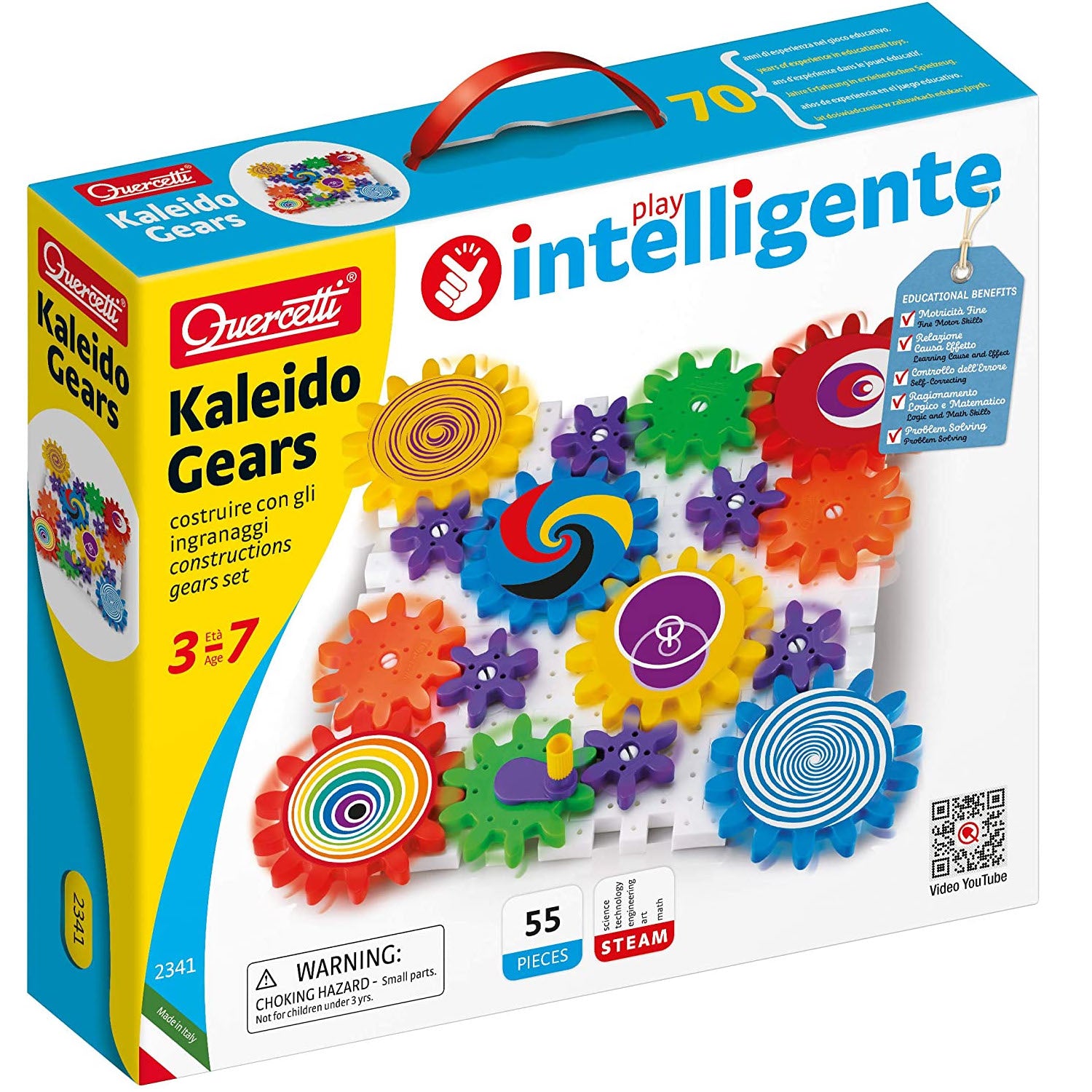 Even young children will delight in figuring out how to put the pieces together and attach the gears creatively and independently. The 6 largest gears have stickers that make captivating designs as they spin. The square base pieces interlock easily to form flat or 3D structures. You can even make a gear box!