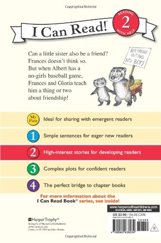 Frances doesn't think her little sister can be her friend, but when Frances finds herself left out because of a "no-girls" rule, she decides to show those boys what girls can do. In the process, she discovers that sisters can indeed be friends . . . maybe even best friends!