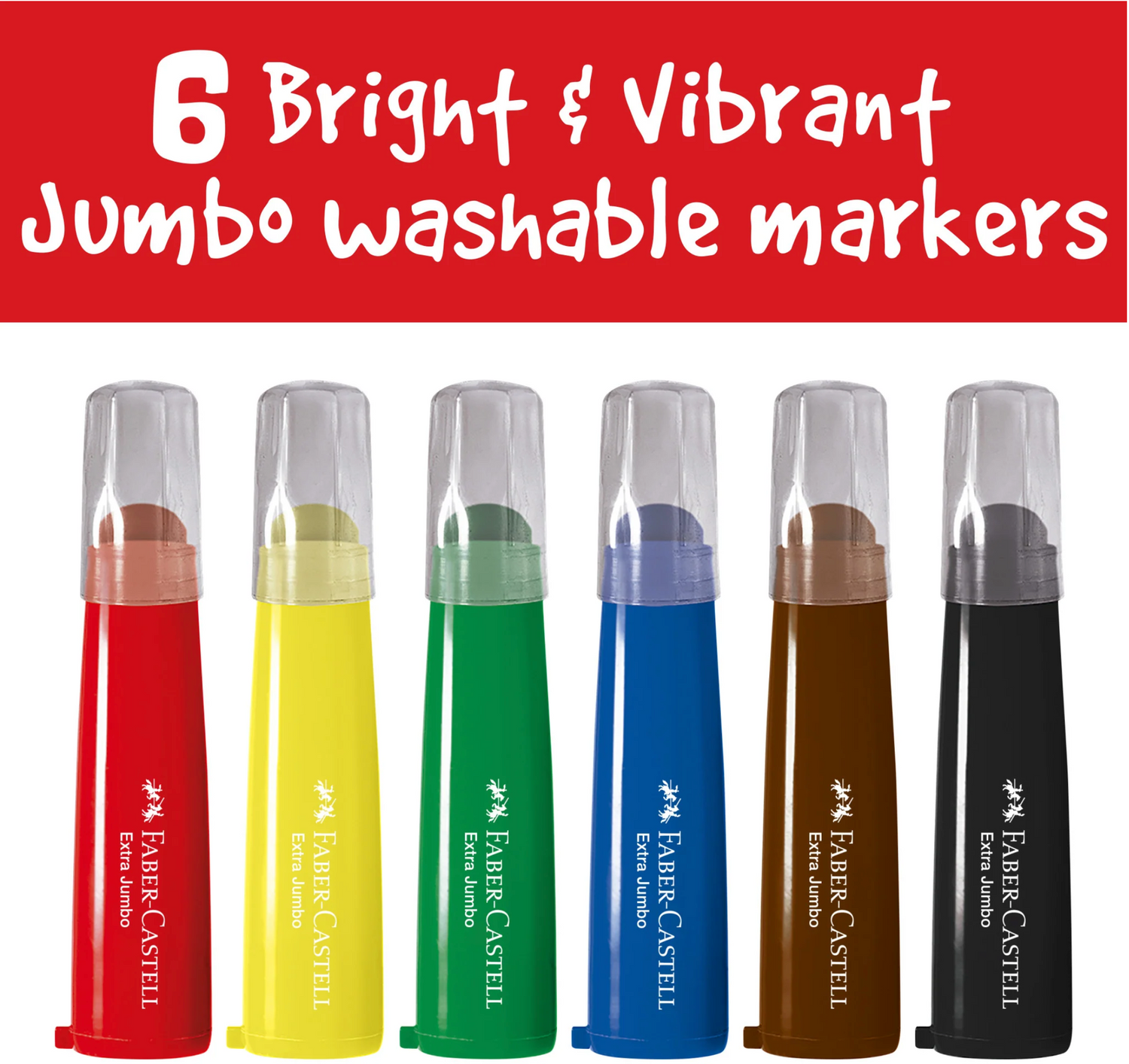 Teacher recommended, Little Creatives Extra Jumbo Ultra Washable Markers contain an ergonomic barrel for comfort, which is ideal for the palmar grasp. Extra jumbo markers contain wide, crush-proof tips that can withstand pressure without causing damage, allowing for a longer life span.