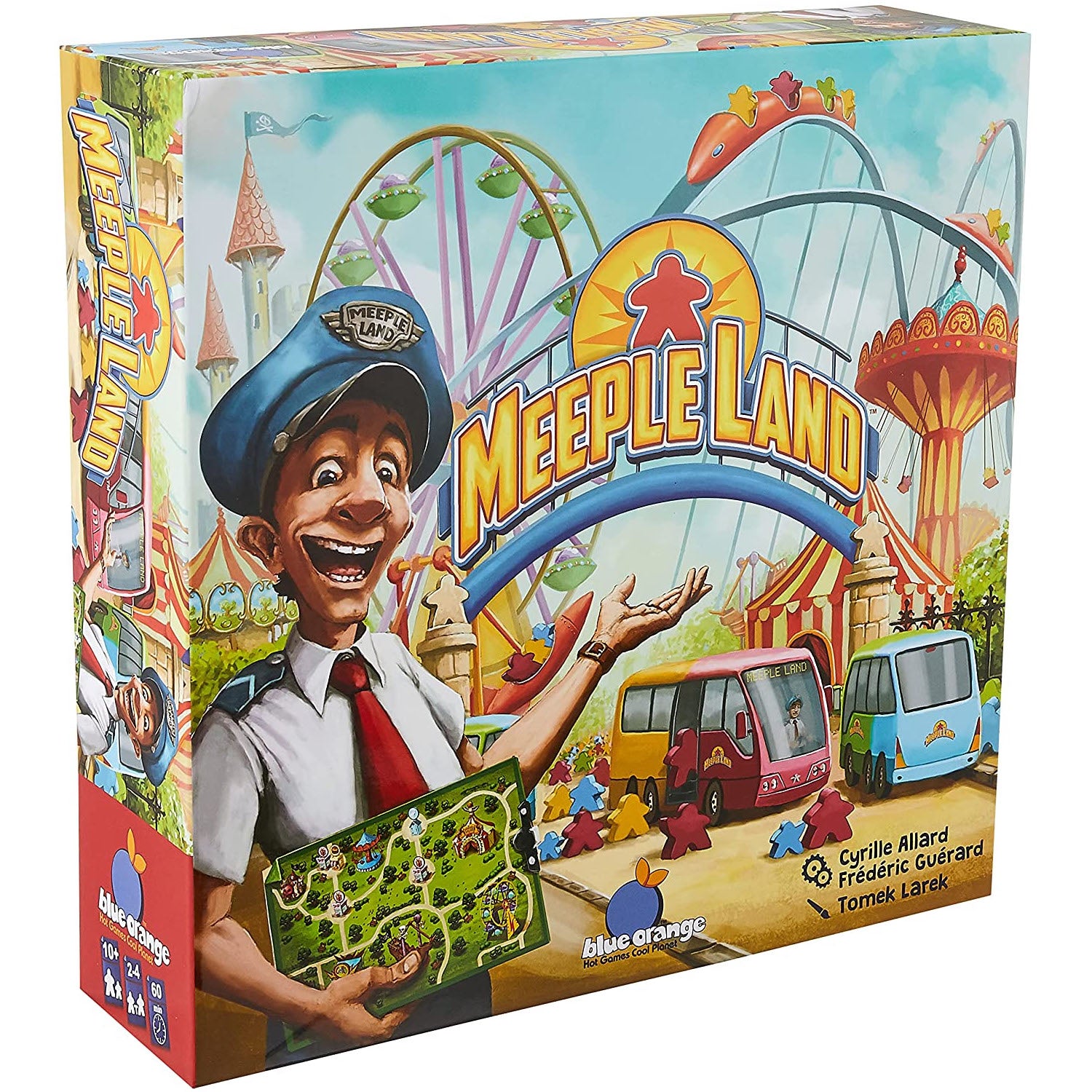 Buy the most beautiful attractions, offer the best services and accommodate as many meeples as possible with buses and advertising. Meet the expectations of the meeples and success will be yours! Be careful, do not neglect any of your meeples, the unsatisfied ones will tarnish your reputation.