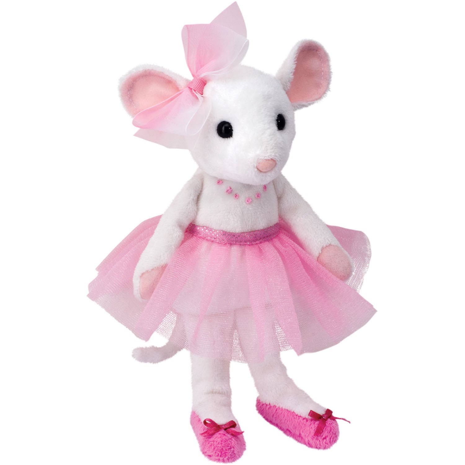 At 9 inches tall, this little mouse is ready to dance! Petunia wears a pink tulle tutu and matching ear bow. Her soft, pink slippers have a tiny satin bow and she has an embroidered pink necklace. She's as soft and cuddly as can be. Made by Douglas, a family owned business that has been making heirloom quality stuffed animals and plush toys since 1956. 9 inches tall. Surface washable. Ages 2 and up.
