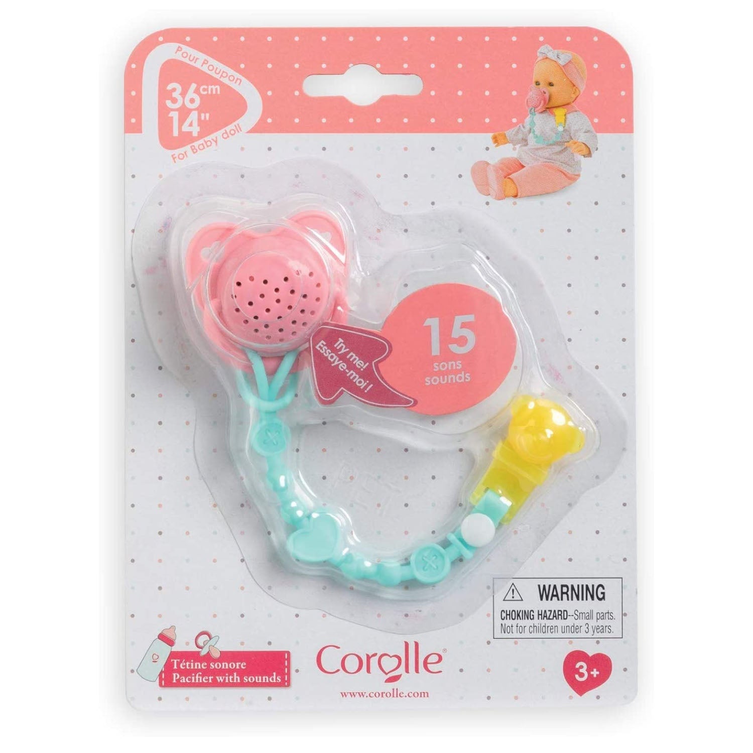 This interactive pacifier is an essential accessory to reassure your baby doll. It has 15 sounds that can be activated ... works with 3 LR41 batteries (included).
