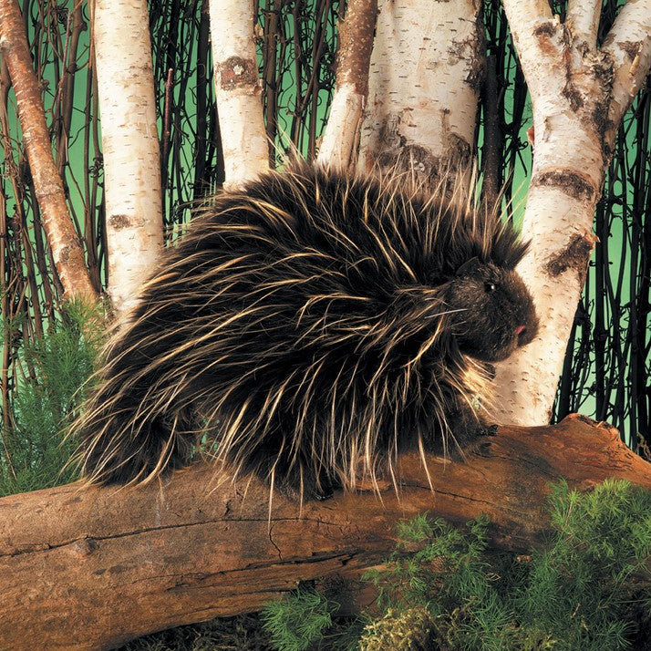 Special plush gives this porcupine puppet the appearence of having quills, but never fear! While she may poke about, she won't poke you! Hand enters from chest area to animate the front legs and head. Measures 13 inches long. Ages 3 and up.