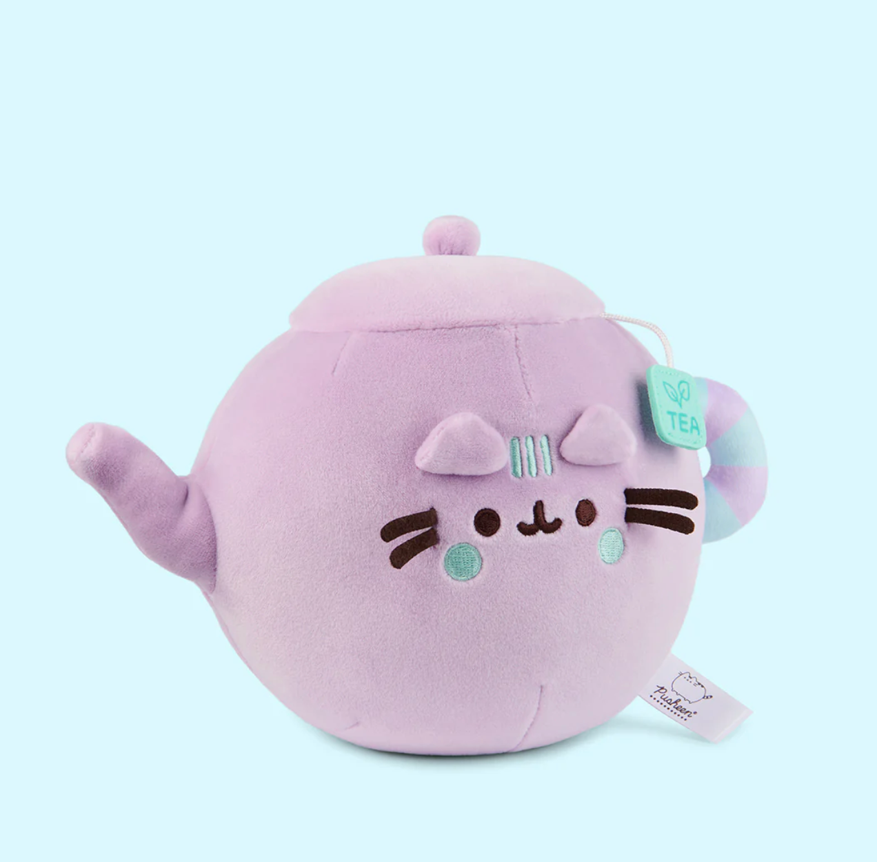 Cozy up with a warm, comforting cup of Pusheen tea! The internet’s favorite lazy tabby cat is here as a soft, squishy and super-squeezable teapot Squisheen. Her velvety lilac-colored plush is made of super-soft, elastic materials that make her fun to squeeze, and this adorable plush has details sure to impress any Pusheen plush collector. Pusheen’s delicately curved spout sits opposite a teal-and-purple striped handle loop, which matches her teal embroidered facial details. Her cheeks and stripes are accented by a small square felt teabag tag that hangs from her lid, adorned with a printed leaf design. Give her a squeeze any time you need a soothing cup of cuteness!