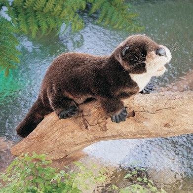 Our joyful river otter squiggles with delight when you work its mouth, head and tail with the movement of your hands. This two-handed puppet features handsome chestnut fur and detailed webbing on his leathery feet.