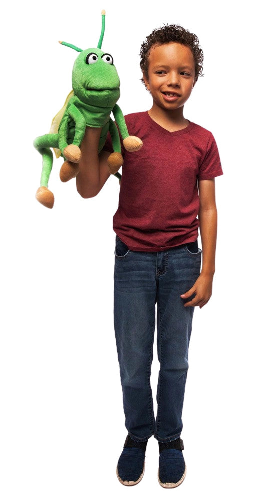 This 15” Grasshopper puppet is so funny! His colorful character has an easy moving mouth and posable antennas, making it one of our most fun Animal Hand Puppets! Hand enters through bottom of puppet.