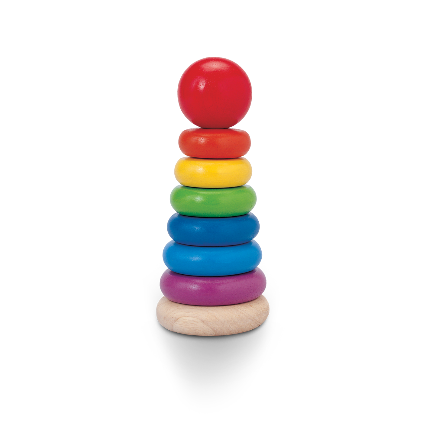 EDUCATIONAL PLAY: Invite your child to practice stacking sorting and grasping the stackable rings. Learn to sort the rings by color and size and challenge little ones to stack the rings faster and faster each time! SUSTAINABLY-MADE: Made using sustainable rubberwood and colored with non-toxic water-based pigments the Stacking Ring is free from both harmful chemicals and sharp edges to ensure safe play. SUPPORTS DEVELOPMENT: Develop hand-eye coordination and fine motor skills while grasping lifting sorting and stacking the rings. Learn to differentiate between a variety of colors and sizes. Encourage problem solving by using a trial-and-error process to stack the rings successfully. Support communication and language skills by talking through each step of play. INCLUDES: The Stacking Ring consists of 6 circular rings varying in color and size with a base for stacking. An oval on top completes the structure once fully stacked. Suitable for children 18 months and older.