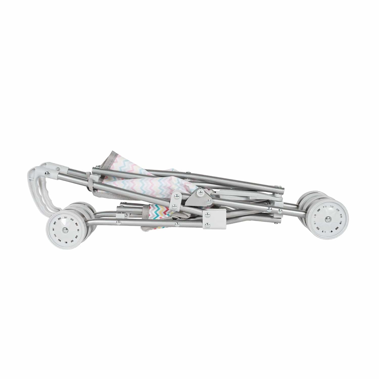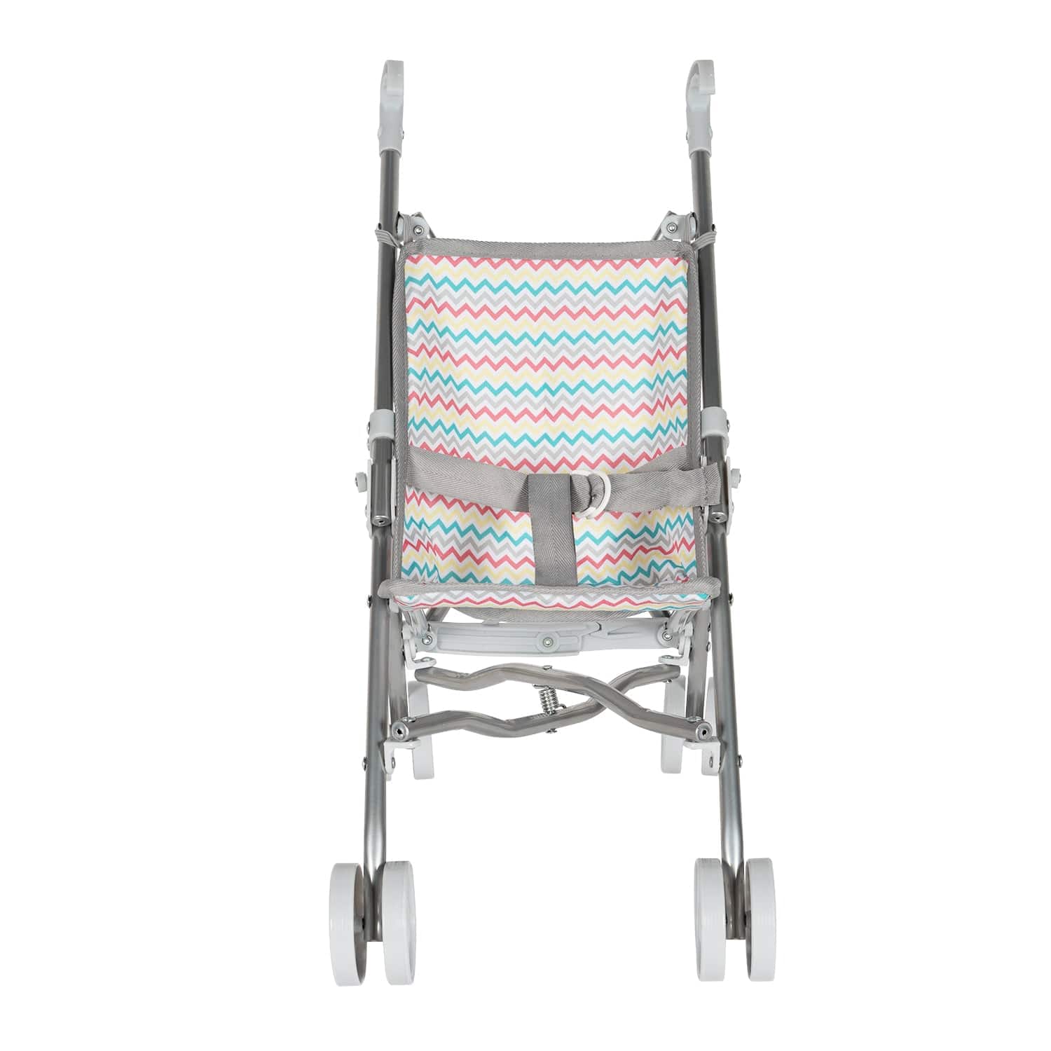 The Adora Mini Stroller for dolls is designed to fit dolls (sold separately) up to 15 inches in size. It’s double-wheeled for easy steering and stability, even when taken outdoors, and it folds up for easy storage when not in use.