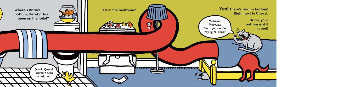 Can you find Brian's bottom? Where could it be? Have you looked in the hallway? Has Pauline the parrot seen it? Maybe it's in the living room, with Alan the hamster? Or perhaps in the kitchen with hungry Dave the tortoise? In the bathroom with Derrick the duck? Oh where could it be?