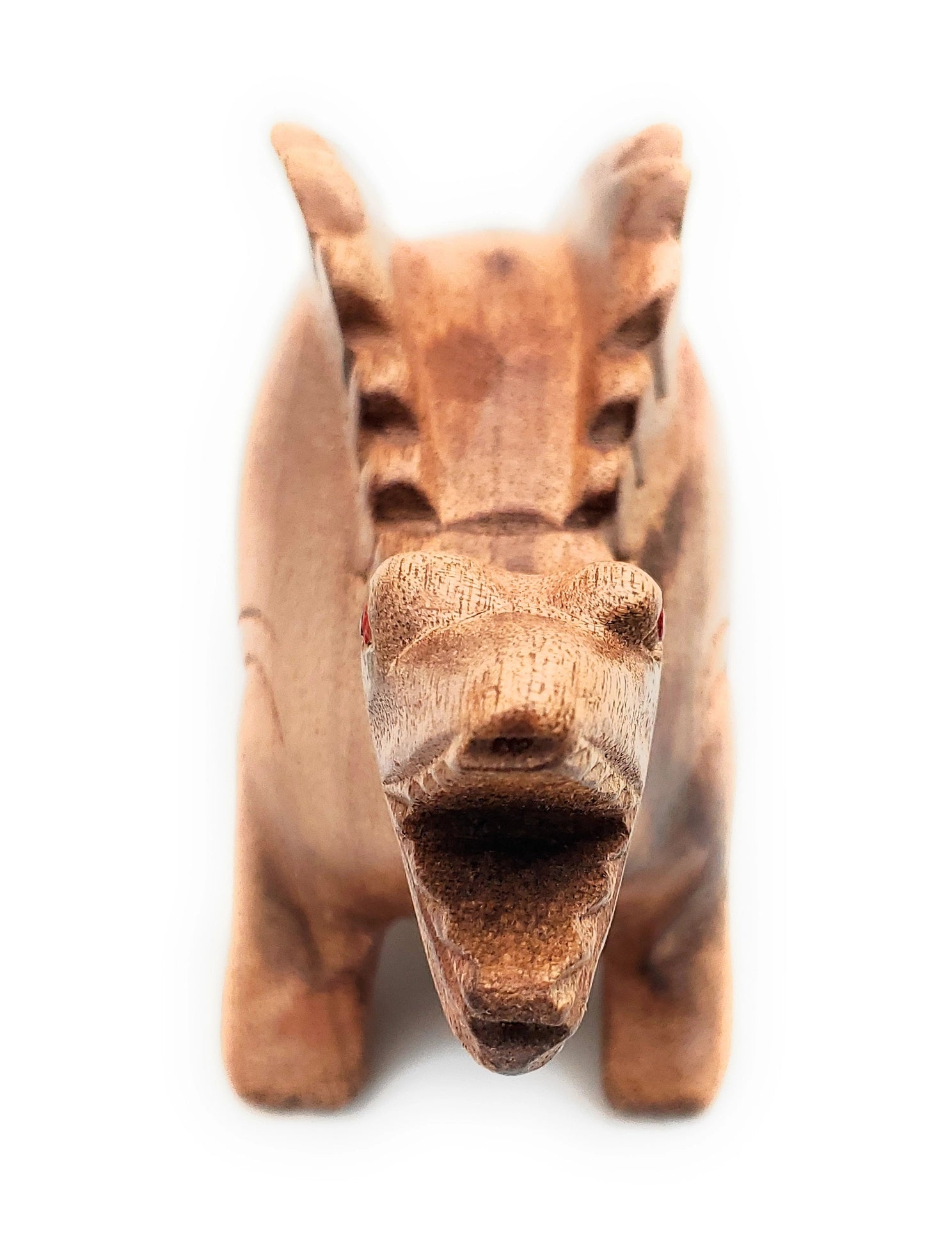 This uniquely hand crafted Stegosaurus dinosaur carving creates fascinating sounds when admirers blow through an air hole in its back. Handmade, no two are exactly alike. (requires one hard consistent blow/breath of air). Note: contains plastic insert which creates the sound.