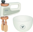 Bring joy to imaginative play with this classic wooden hand mixer set by Goki. The expertly crafted kitchen toy features a smooth-turning handle mechanism that creates realistic mixing action, perfect for pretend baking adventures.