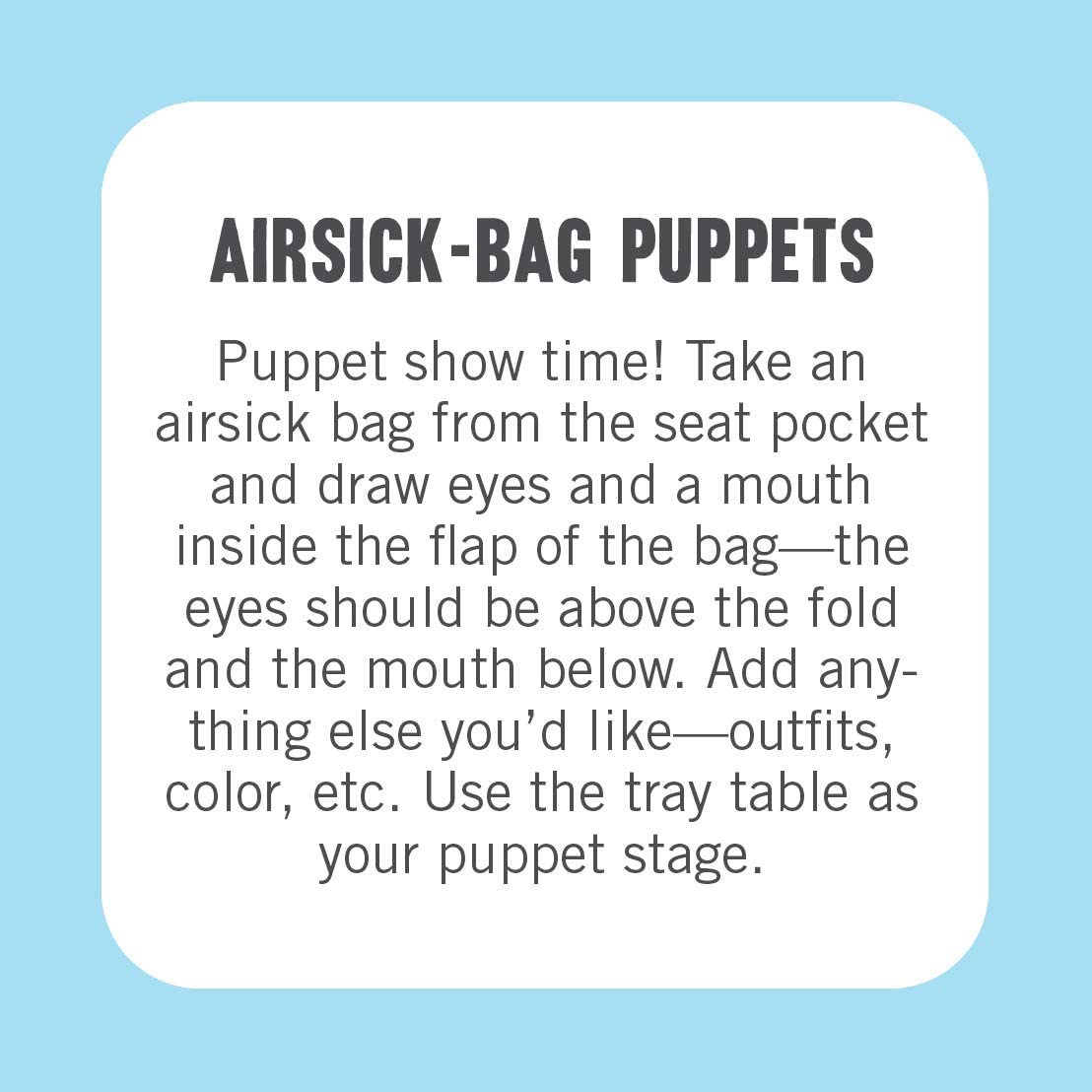 Looking for some fun, screen-free activities for airplane travel? Look no further than this cute, compact tin filled with 50 great ideas for family fun up in the air!