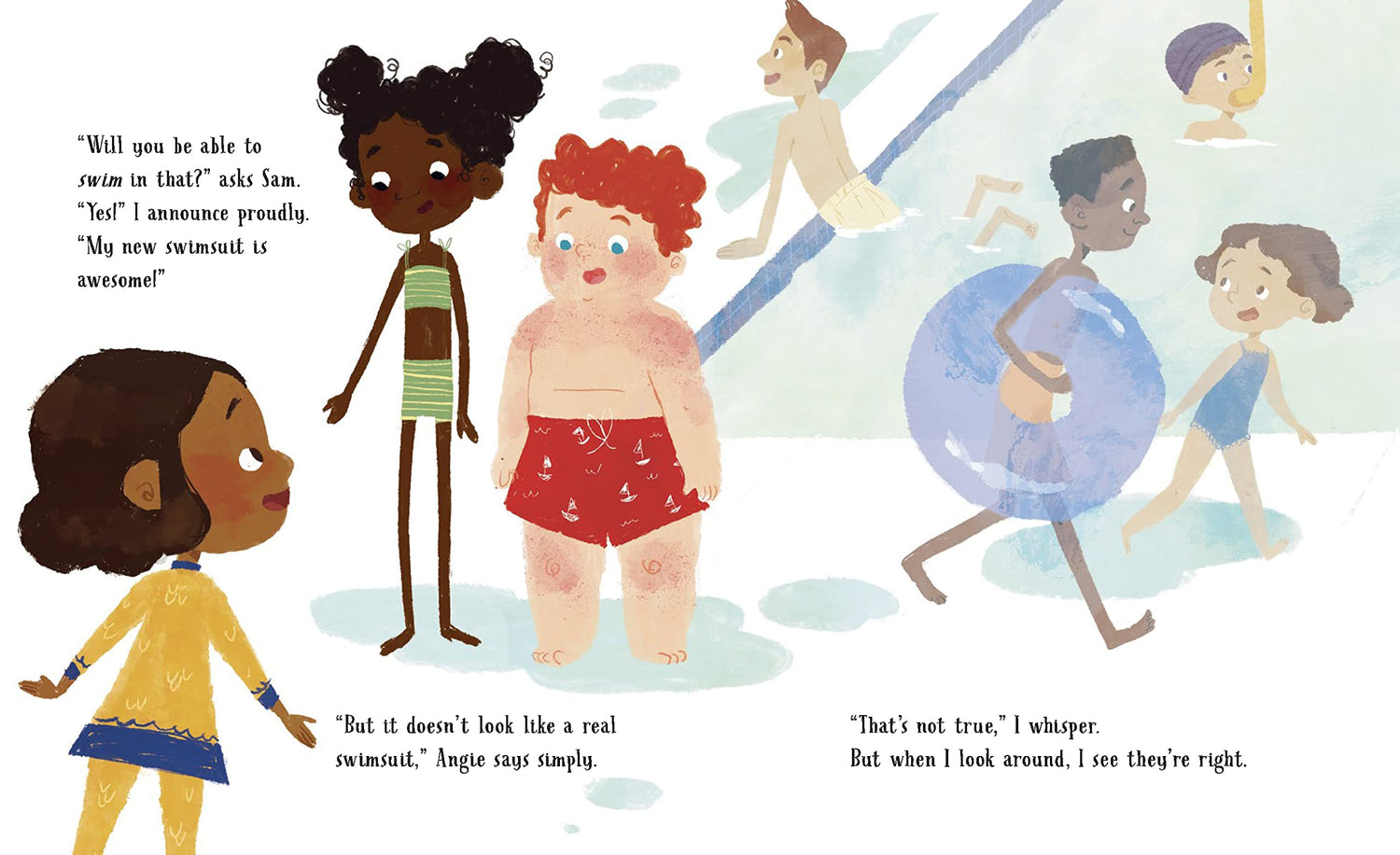But when Heba arrives at the pool and her friends start asking her questions about her new special swimsuit, she feels like she's standing out too much. Suddenly her burkini seems like a bad idea.