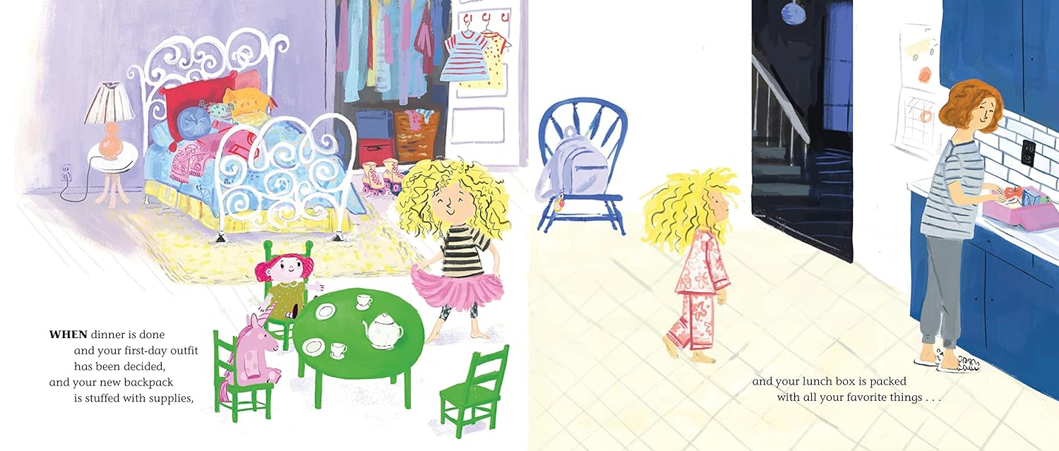 Cooler mornings, cicadas buzzing, apples ripening . . . Can shopping for school supplies be far behind? The evening before the first day means laying out your outfit, loading up your backpack, and filling a lunch box with your favorite things. When the alarm goes off, there’s Dad’s extra-special breakfast (and, of course, some picture-taking), then the feeling of bubbly excitement as you and your friends climb onto a bus, ready to see your new classroom and meet your teacher. Whether the reader is a child who is eager to return to school or a younger one trying to imagine what school is like, this upbeat and lyrical ode—the fourth in the And Then Comes series—holds sure appeal for returning students and first-timers alike. Hardcover. Suggested ages 4-8.