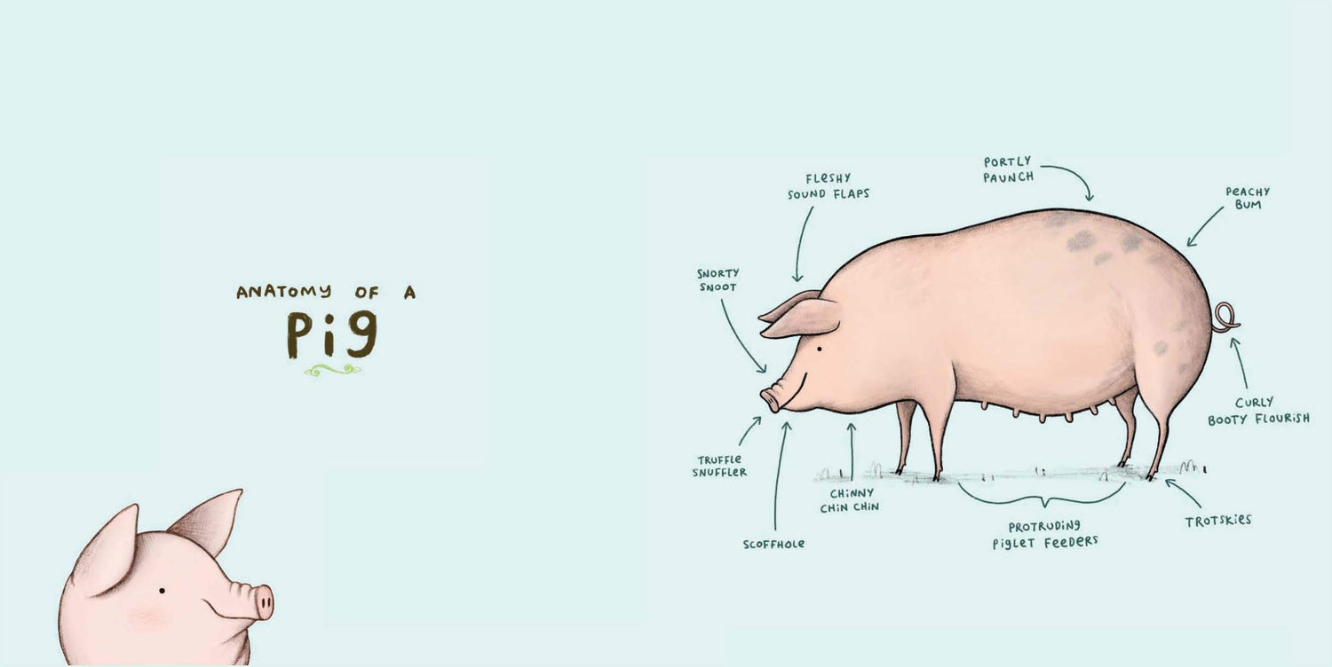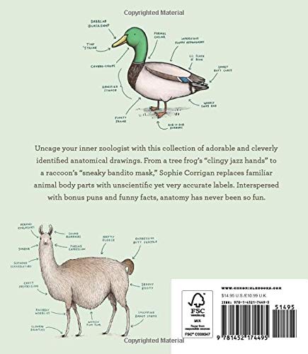 Charmingly illustrated, wittily worded: Each critter featured in this fun book is tagged with totally fictitious yet comically accurate anatomical labels, from a tree frog's "clingy jazz hands" and a raccoon's "sneaky bandito mask," to a velociraptor's "disembowly prowlies" and many more. In Animal Anatomy, illustrator Sophie Corrigan evokes everyone's inner zoologist with animal parts that although not anatomically correct are absolutely spot-on! Unscientific names for scientific parts such as a duck's "rub-a-dub dubbers," a sheep's "phat afro," a horse's "concealed good luck charms," a weasel's "pipe cleaner," and so many more. Hardcover. Suggested ages 8 and up.