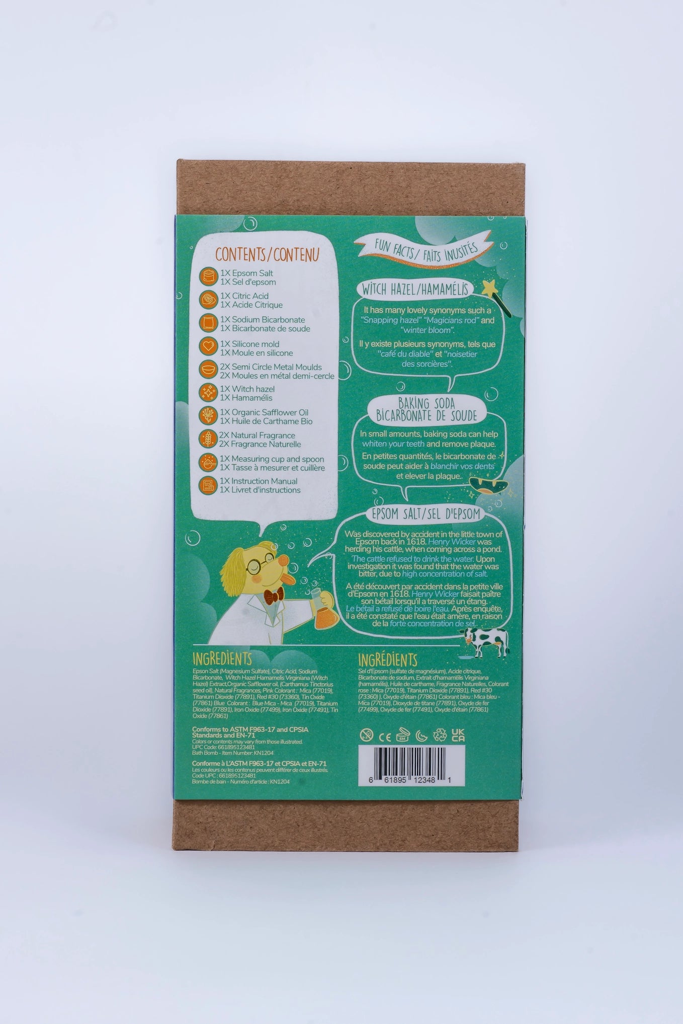 Award-winning, all-natural, make-your-own Bath Bombs Kit blends science and fun together in the comfort of your kitchen! Combine the Secret Formula and Witch Hazel together with our signature natural fragrances. Press into the reusable heart-shaped silicone mold, allow to dry, then watch as they fizz and bubble in the bath water! Now available in gold mica. Non-toxic, no parabens, no synthetic dyes, Just pure, all-natural ingredients. Makes 8 awesome bath fizzies!