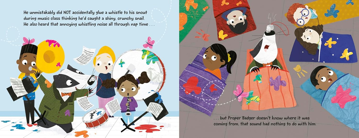 Proper Badger is going to school. It's possible he got on the wrong bus, but he's always wanted to go school, and after all, he looks exactly like all of the other well-behaved, well-mannered students. He can't wait to get tons of gold stars. He has heard gold stars are crunchy and delicious. He will be on his very best badger behavior.
