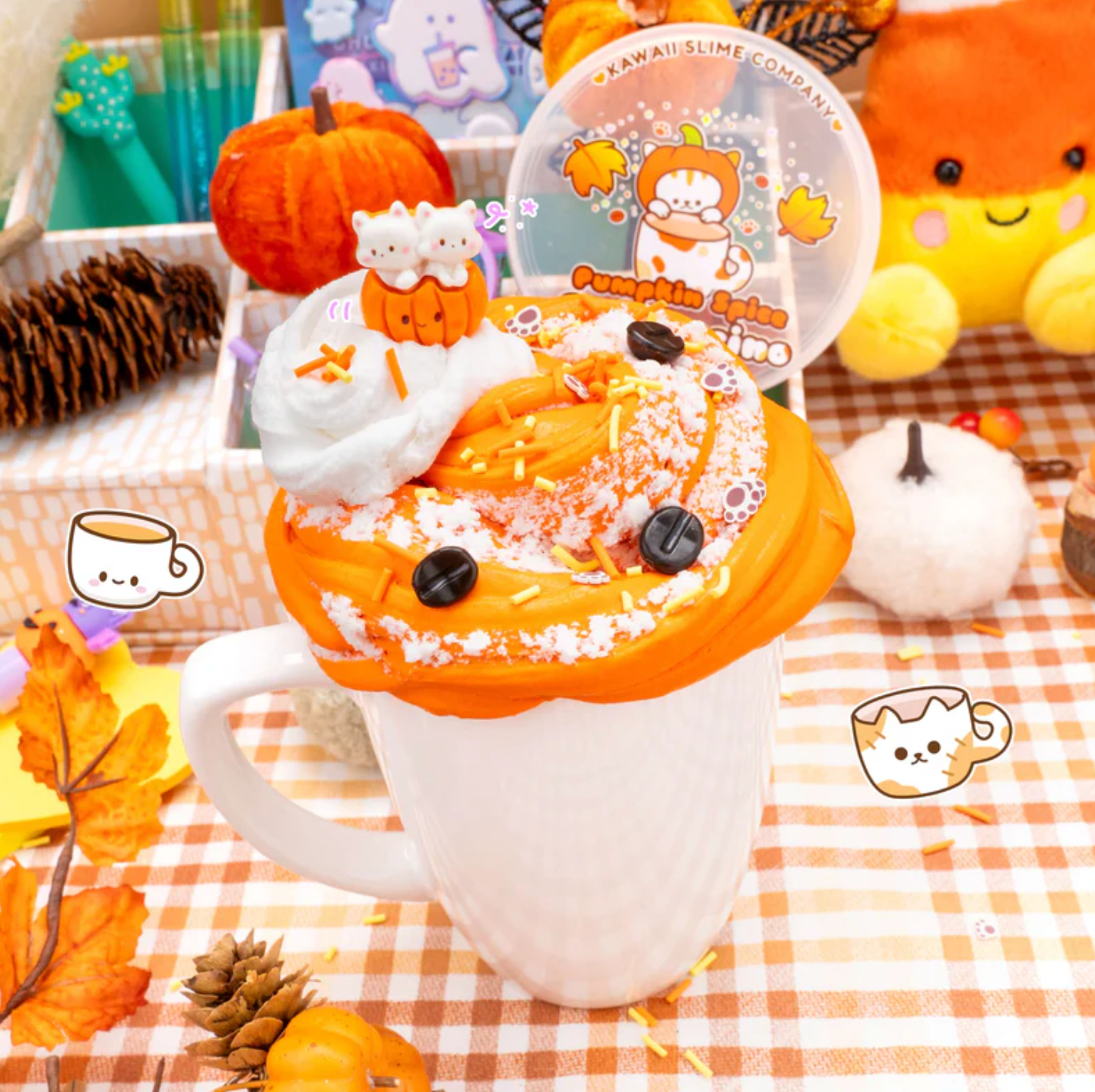 Me-wow! Celebrate the flavor of fall with this buttery Pumpkin spice scented slime! Complete with creamy "foam" and cat-shaped drizzles, this bundle is sure to delight!