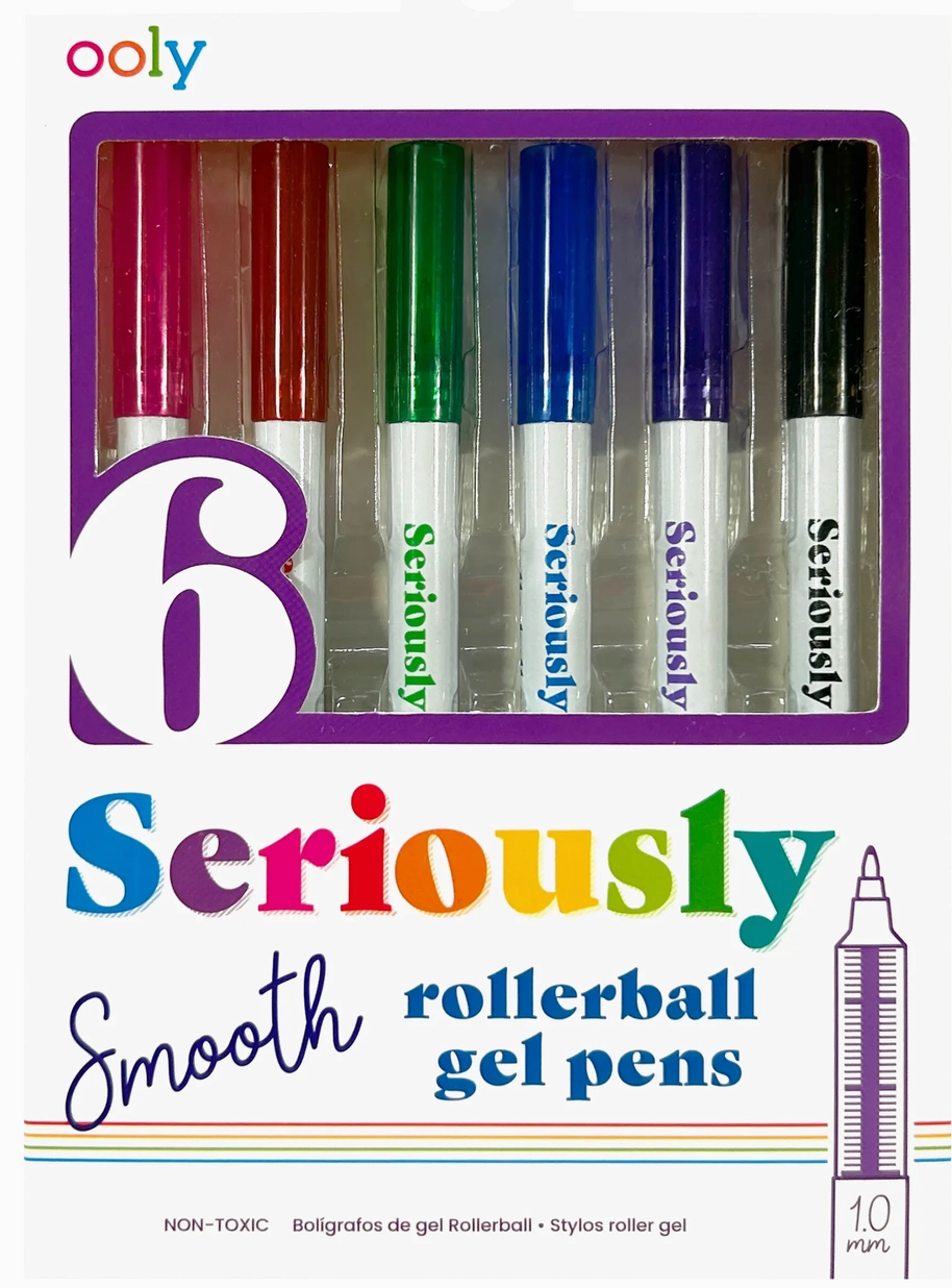 Smooth writing, rollerball gel pens in 6 colors 1.0 Nib Washable ink Non-toxic