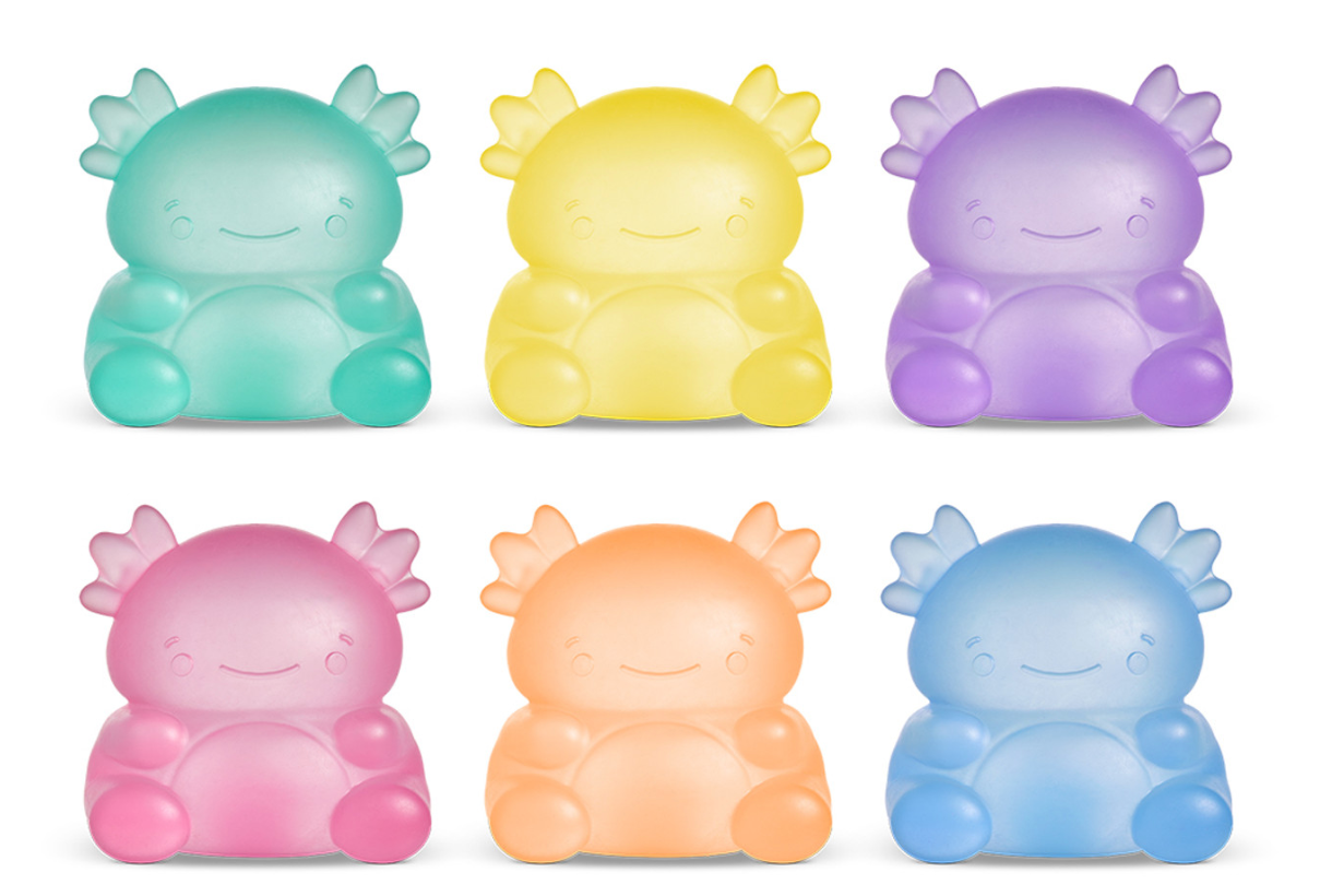 Discover the Super Duper Sugar Squisher axolotl, the ultimate stress relief toy sugarballs! his colorful, fidget-worthy squishy toy features a cool-to-the-touch exterior and a thick, gel-filled center that’s perfect for sensory play and stress relief. Available in a variety of vibrant colors, these tactile squishies are instant collectibles and make the perfect desk toy or shelf accessory. Whether you’re squeezing, fidgeting, or just vibing with your favorite squishy, this gummy frog is a must-have for kids, tweens, and adults who love sensory toys or need a quiet, calming fidget for focus. Aged 8+